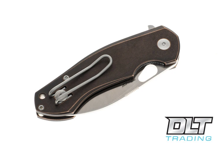 A twist on one of our favorite Biblios. We’ve produced a run of bronze Biblios with natural canvas Micarta inlaid into the presentation side scale, giving an already stunning knife a fresh look. And to further dress it up, we’ve put a satin finished M390 blade on this version.