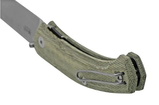 The GiantMouse Ace Iona V2 Green Canvas Micarta is the new model that builds off of the design of its predecessor, the Iona. The same robust and reliable companion, but with a larger blade, a longer handle, improved spine jimping and easier access to the lockbar. That’s what sets the Iona V2 apart from its predecessors. A sturdy and functional pocket knife with excellent cutting capabilities. The knife comes with the standard wire pocket clip. You also get an example version of the new deep-carry pocket clip!