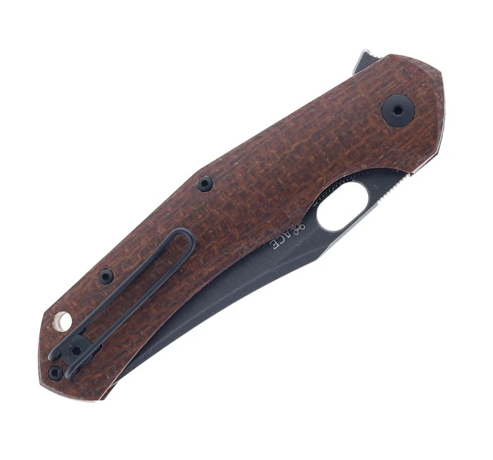 GiantMouse Knives ACE Iona V2 Folding Knife Black Linen Micarta Handle Magnacut Steel